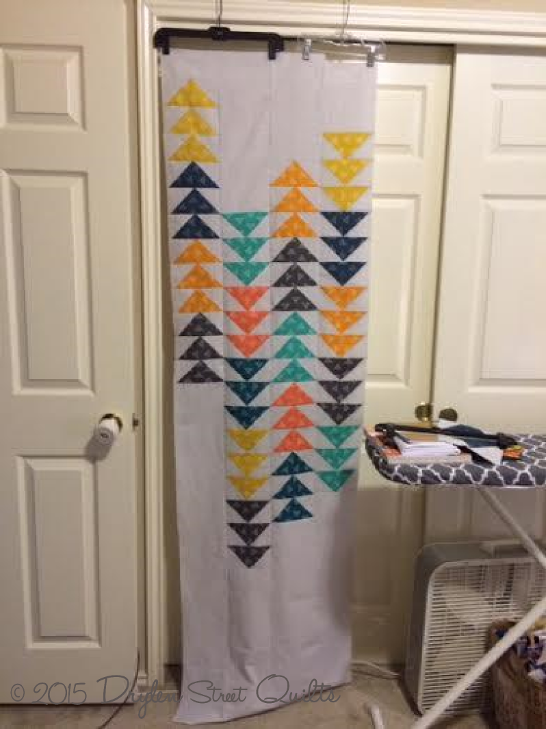 After the kids were put to bed and my Saturday shows were watched and mulled over, I thought I’d get a little Pinterest inspiration and looking up “modern flying geese.” There were so many ideas! At about 1AM, I came up with this: